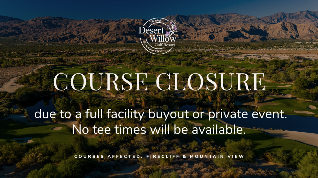 Desert Willow Golf Resort will be closed on this date for a full facility buyout or private event. No tee times will be available. We appreciate your understanding and invite you to check alternate dates for your next round.